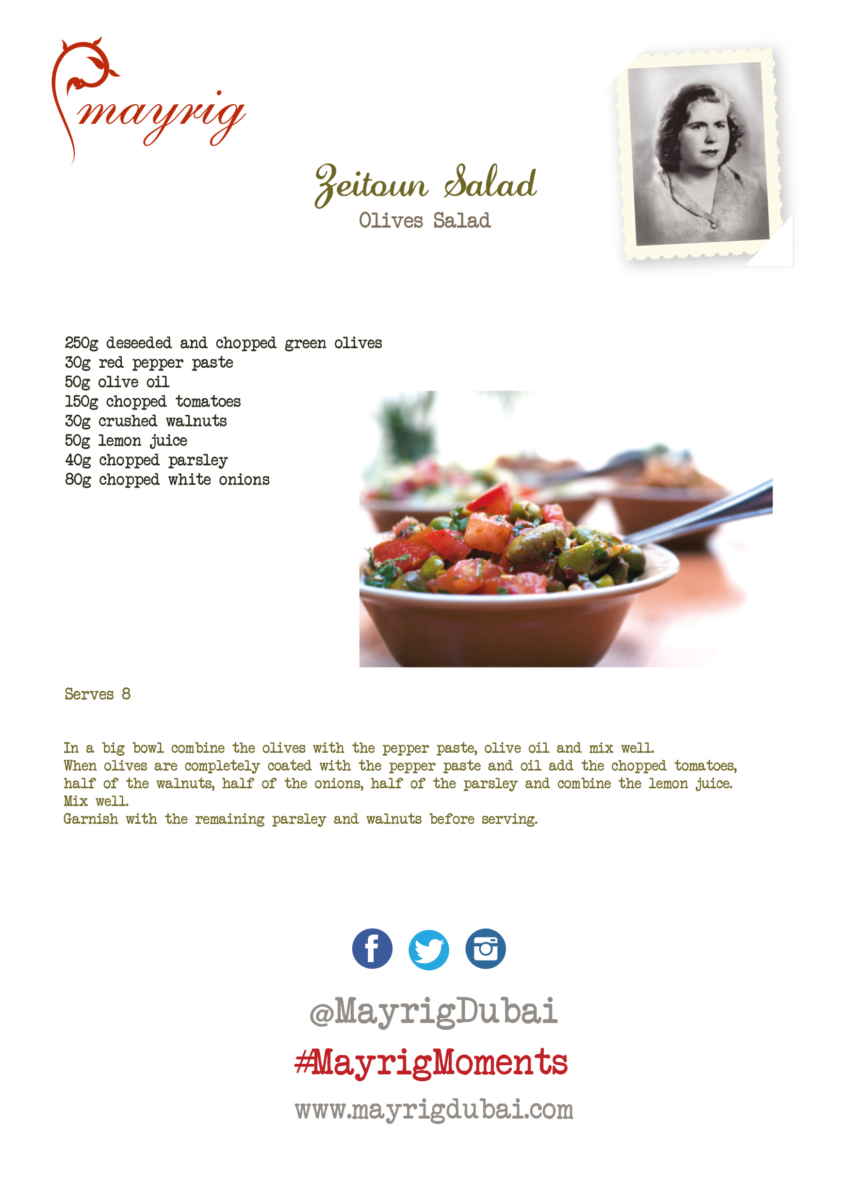 This week, Aline, current contributor to The FitNut Blog and co-founder of Mayrig, is sharing with us her Olive Salad. Just like her Vaspov or Lentil Salad, or Itch, this one looks incredibly refreshing (now that’s a salad lineup I’d be happy to witness!). It would also make a perfect side dish for the Fishnah Kebab.